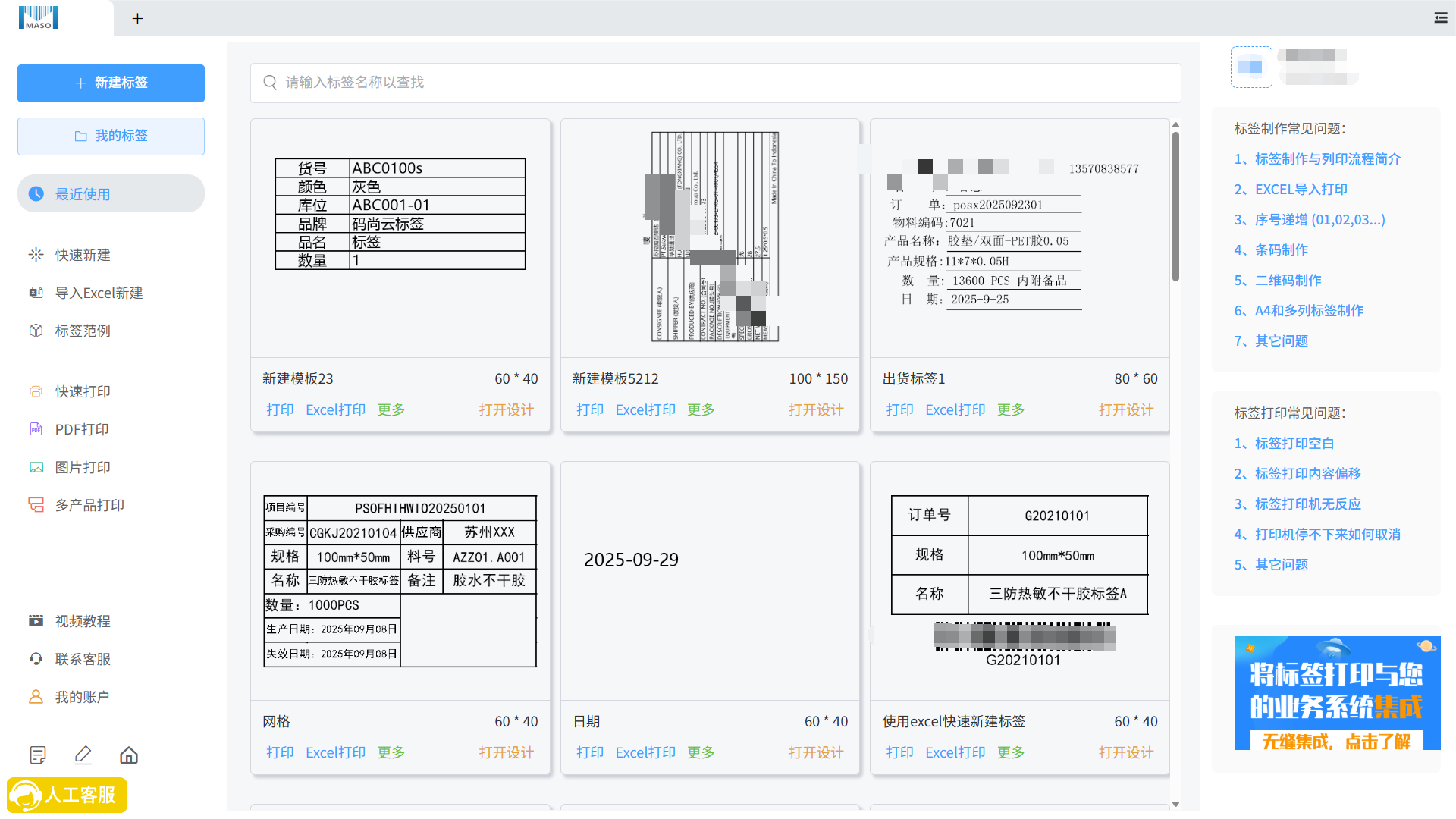 它支持在PC、WEB、iOS和Android四端数据实时同步,并提供了丰富的场景化标签模板,如地址标签、运输标签、零售标签等,让标签设计变得简单高效。