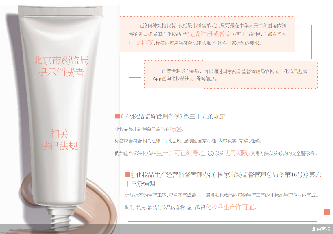 化妆品净含量不大于15g或15mL的小规格包装产品,仅需在销售包装可视面标注产品中文名称、特殊化妆品注册证书编号、注册人或备案人名称、净含量、使用期限等信息,其他信息可标注在随附于产品的说明书中。