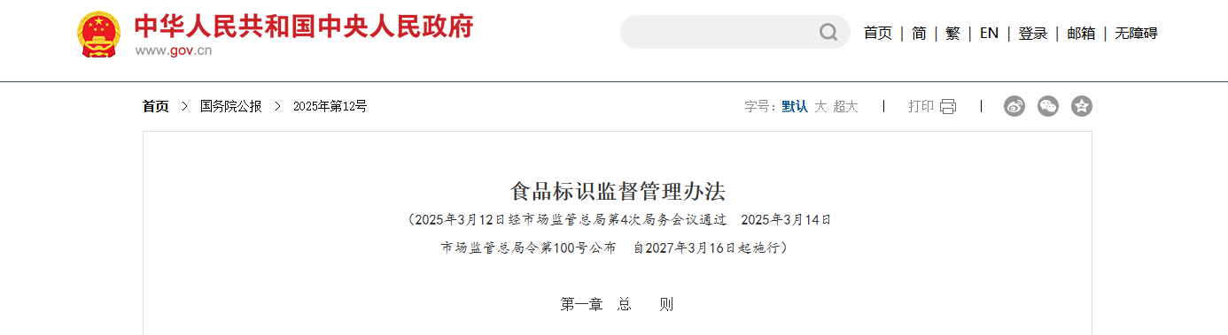 2027年3月16日,《预包装食品标签通则》(GB 7718-2025)、《预包装食品营养标签通则》(GB 28050-2025) 及 《食品标识监督管理办法》 三项法规标准将同步实施,覆盖所有预包装食品标签管理。
