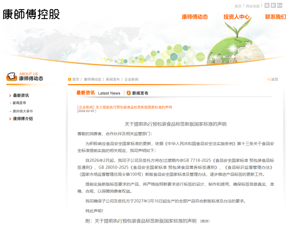 目前距离强制实施只剩不到一年。统一企业已于2026年1月启动标签改版,康师傅于2026年2月跟进,在过渡期内逐步推进标签更新。对于拥有多个SKU的食品企业,如何在剩余缓冲期内完成日期标注调整、营养标签更新及批量标签输出,是当前阶段需重点规划的工作。